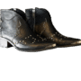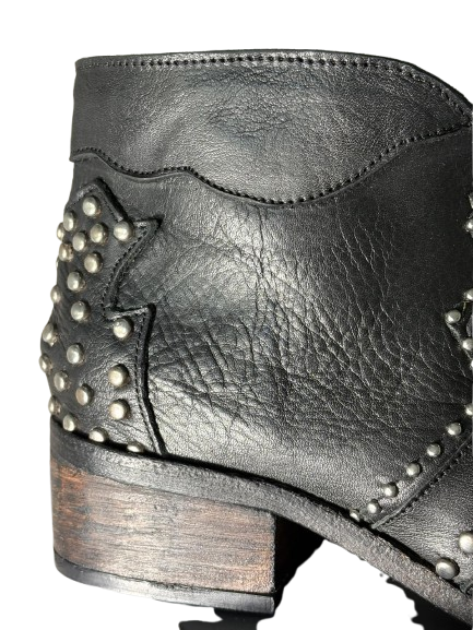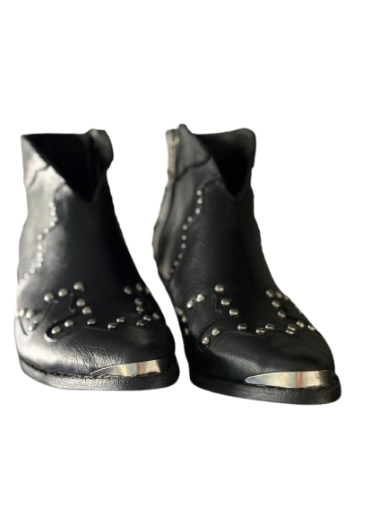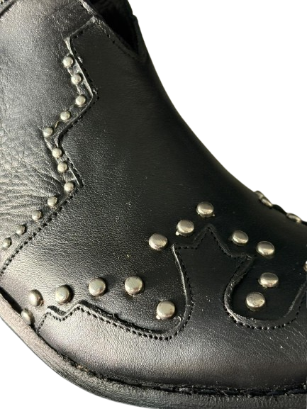 Bota corta , cuero 100% , color negra y tachas en capellada , taco de 4 cm . ingreso con cierre metalico.